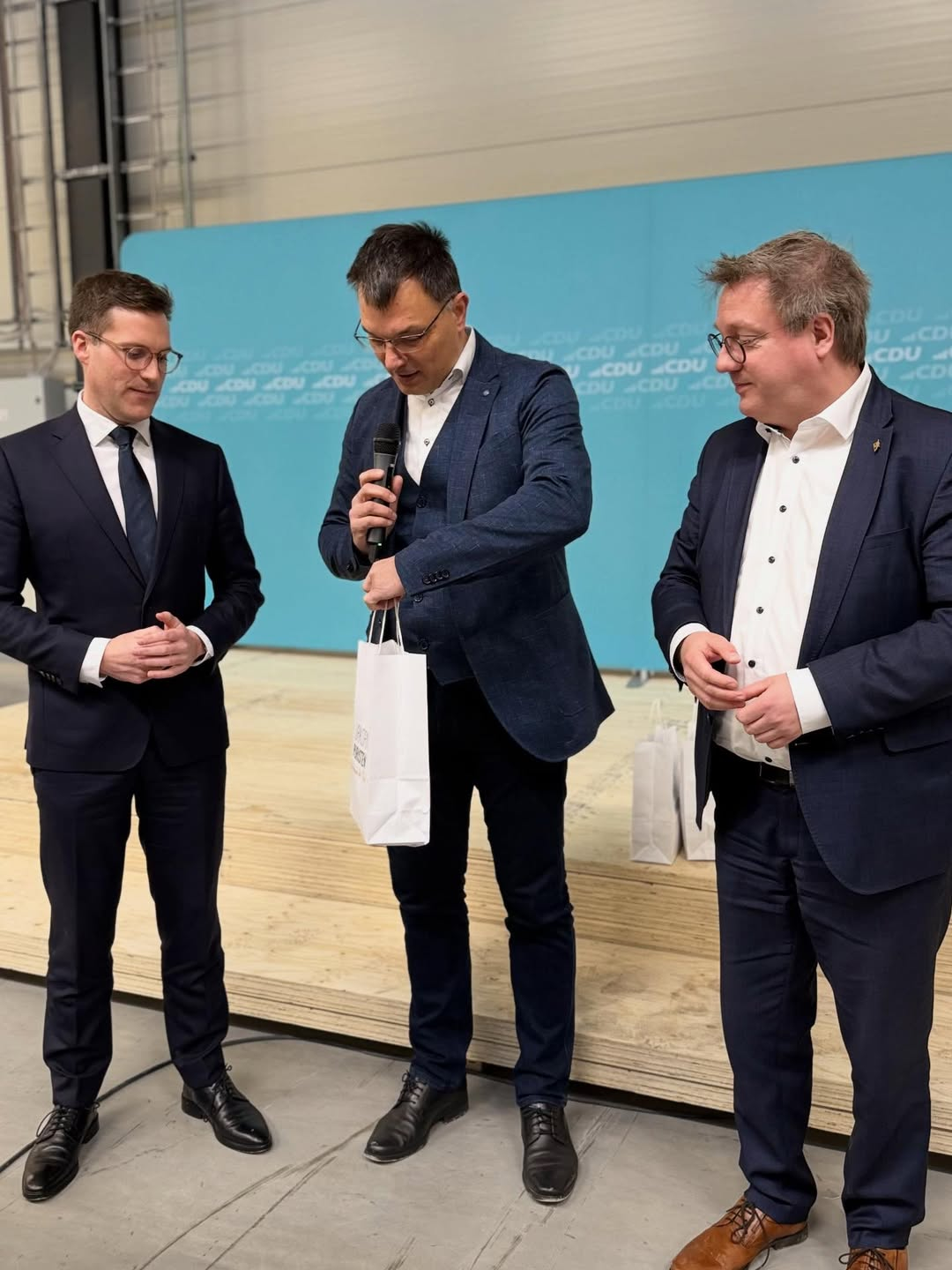 Zugleich bot die Veranstaltung die Möglichkeit, das Unternehmen GROPYUS Production GmbH näher kennenzulernen sowie den Hauptredner des Nachmittags, den CDU-Spitzenkandidaten für die Landtagswahl 2026 in Baden-Württemberg, Manuel Hagel MdL, persönlich zu erleben.
